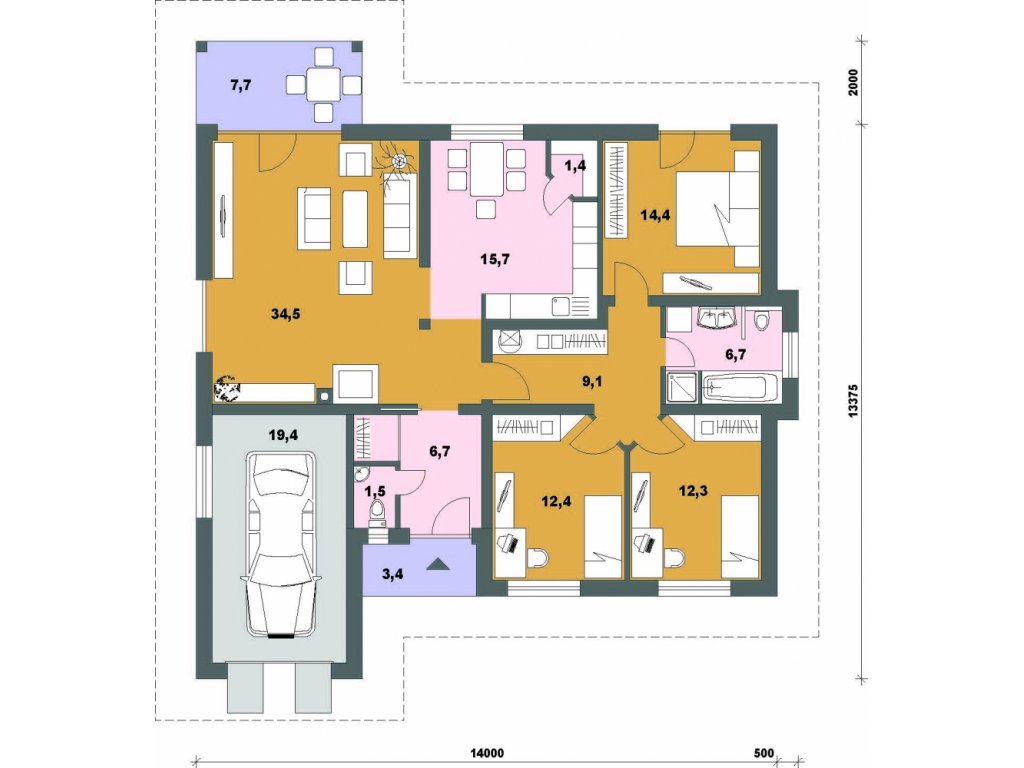 OPÁL 77/234 je dům střední velikosti se 4 obytnými místnostmi. Svými rozměry uspokojí nároky na bydlení 4 členné rodiny. Garáž v domě je možno změnit na pracovnu, případně pokoj pro hosty se vstupem z chodby. Z boční strany domu je možno přistavět garáž, případně dvougaráž. Dům je vhodný pro rovinaté případně mírně svažité stavební pozemky. Obsah a cena projektu pro povolení a provádění stavby... číst dále