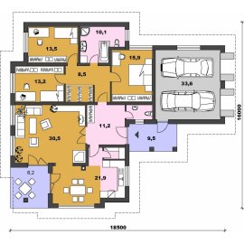 OPÁL 86/210 je dům větší velikosti se 4 obytnými místnostmi. Svými rozměry uspokojí nároky na bydlení 4-5 členné rodiny. Prosklením kryté terasy vytvoříme zimní zahradu. Dvougaráž může sloužit i jako samostatná bytová jednotka případně kancelář. Svým dispozičním uspořádáním umožňuje částečné případně úplné podsklepení se schodištěm umístěným v místě šatny. Obsah a cena projektu pro povolení a provádění stavby... číst dále