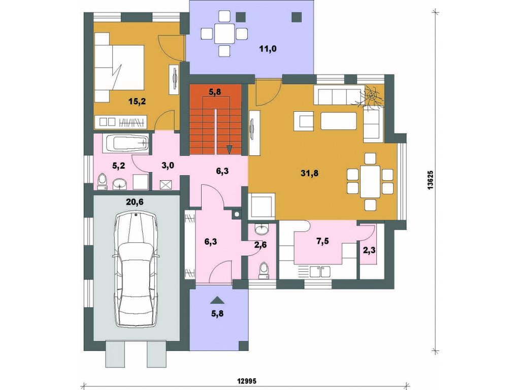 SMARAGD 86/240 je dům střední velikosti se 4 obytnými místnostmi. Svými rozměry uspokojí nároky na bydlení 4-5 členné rodiny. Garáž může sloužit jako pokoj pro hosty, případně pracovna. Svým dispozičním uspořádáním umožňuje částečné případně úplné podsklepení. Uzavřením kryté terasy vytvoříme zimní zahradu. Dům je vhodný pro rovinaté případně mírně svažité stavební pozemky. Obsah a cena projektu pro povolení a provádění stavby... číst dále