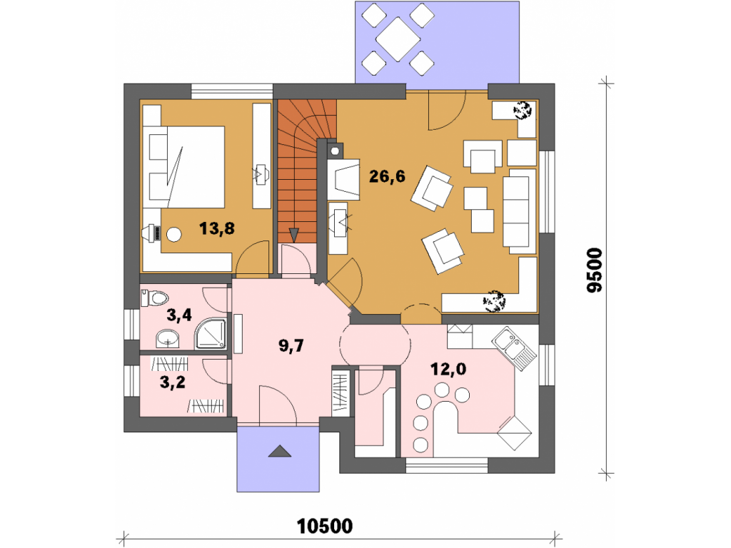 DIAMANT 86/17 je dům menší velikostní kategorie se 5 obytnými místnostmi. Svými rozměry uspokojí nároky 4-6 členné rodiny. Rodinný dům je možné částečně nebo úplně podsklepit. Rodinný dům osazený do svahovitého terénu umožňuje umístění garáže do suterénu.