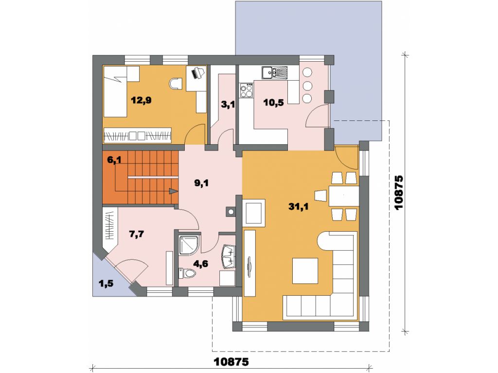 | Šířka domu: | 10,875 m |