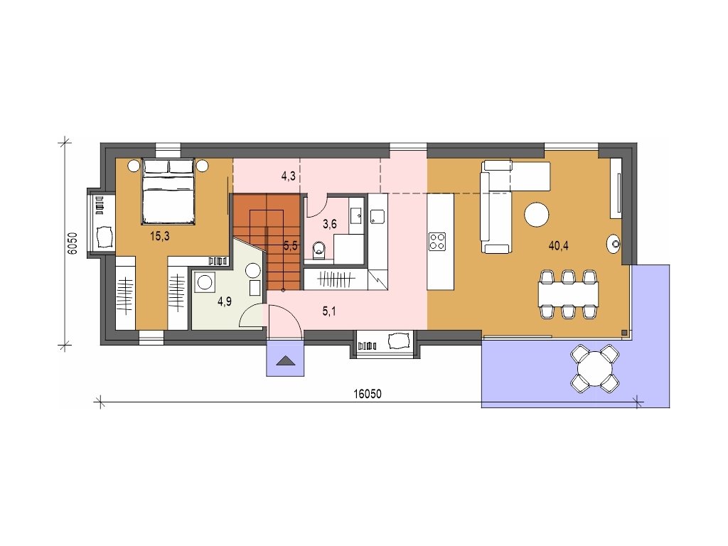 Délka domu:  6.05 m