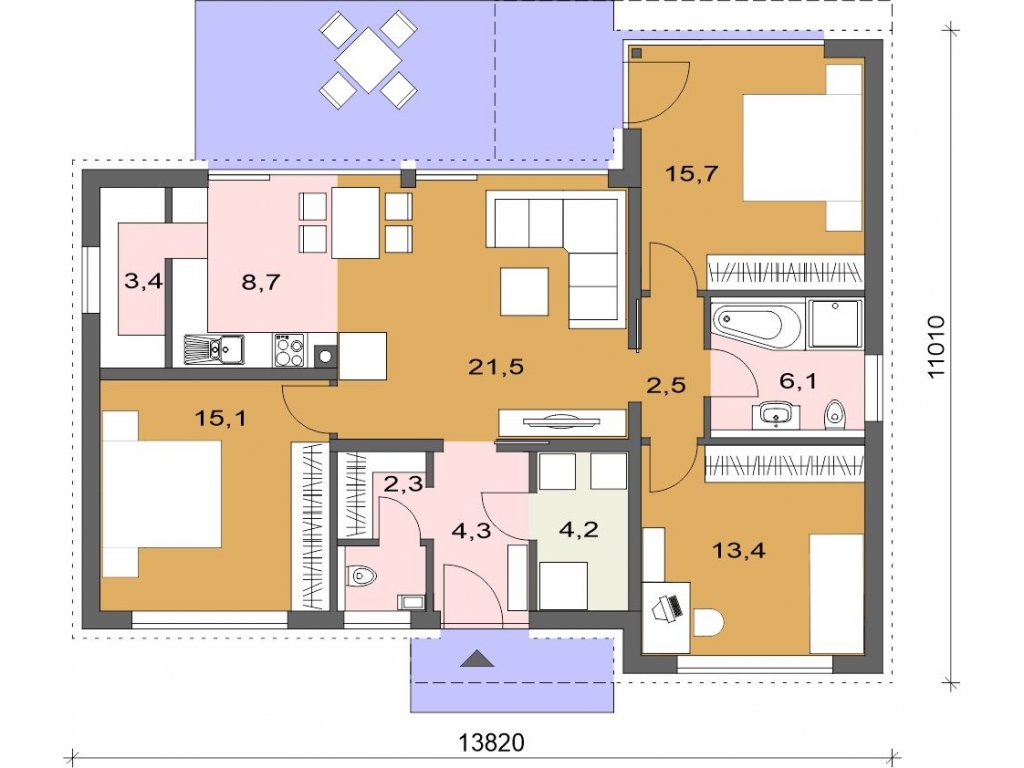 Šířka domu:  13.8 m