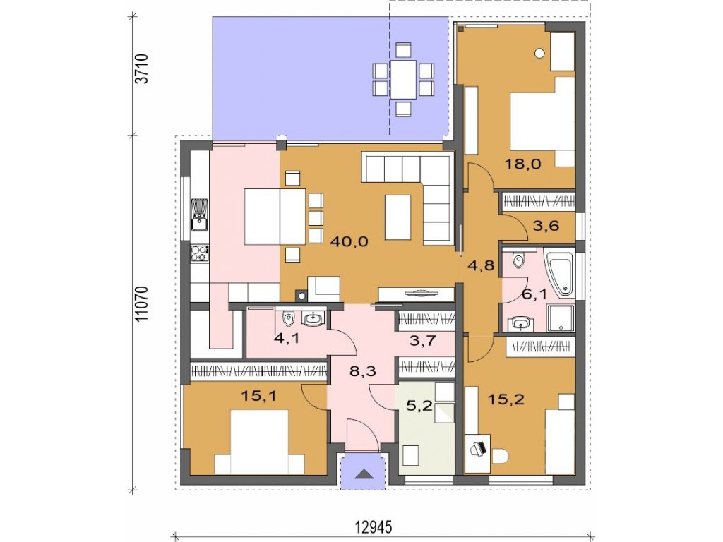 Šířka domu:  12.9 m